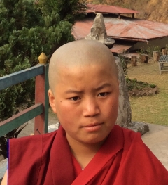 Ani Dechen Wangmo joined the nunnery in April 2014. She has three siblings and she is a middle child. She has studied up to the eighth grade standard in the Bhutanese school. She came to the nunnery to study and practice Buddhism. She would like to study well, to be a good nun and she would like to serve the nunnery in her best way.