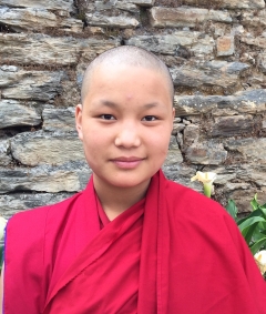 Ani Chodrak Lhamo is from Chaskhar Monger, Bhutan. Since she is the eldest of four children, she stayed at home helping her parents and her siblings. She has not been to the Government school, however, she did complete her Non-formal education provided by the Royal Government to illiterate peoples in rural Bhutan. She would like to do retreat in the future and eventually become the discipline master.