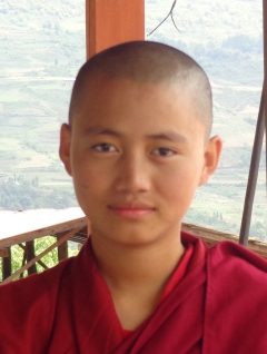 Ani Choeyang Randrol is from southern Bhutan, she joined the nunnery in 2013. She studied up through the sixth grade at the public school before joining the nunnery. Her parents divorced when she was very young. She says that when she was home she was sick most of the time and that since she has moved to the nunnery she is feeling much better. She has three siblings. Her two sisters stay with her mother and stepfather back home. Her stepfather is good to her. She doesn’t have any contact with her father now. She decided herself to become a nun. She says that she has seen her mother facing many problems and she hopes that when she grows up she will be able to help her mother. In the future she would like to do a retreat and then serve the nunnery in whatever way she can.