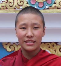 She studied up to 9th standard in Dungtshi Central School in Tashigang. She became a nun on the 21st February 2022. She is in the middle among 7 siblings. While she was in school, she was inspired to become a nun by hearing Dharma teachings from one khenpo. While in school, she served as a prayer leader and she is very interested in becoming a chant leader in the future. She would like to study in the Shedra and do retreat in the future. She is very happy and very grateful to Rinpoche, the teachers and the head nun for all the necessary things she receives and she does not have any problems in the nunnery. Now she would like to study well, serve the nunnery and preserve the teachings of the Buddha.