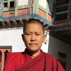 Ani Lekthong Lhamo became a nun in December 2018. She has one younger brother who lives with their aunt. She has completed Grade 12 at Sherab Ling Central School in Trongsa. She wants to learn how to serve the nunnery and hopes to study at the shedra. She was her own choice to become a nun. She hopes that through studying Buddhism she will learn more about herself and how to benefit beings.