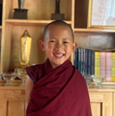 My name is Tsheyang Palmo. I was born in 2017 in the village of Taktse Trongsa. I joined the nunnery on 16th February 2024. Right now I am studying in class PP in the government school and I wish to study through 10th grade. There are 7 in my family: my mother, two elder brothers, two elder sisters, one younger sister and me. My mother works in the fields. I am very happy in the nunnery with the help and care of all the teachers and older nuns.